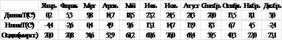 Таблица 1. Среднемесячные температуры и суммы осадков