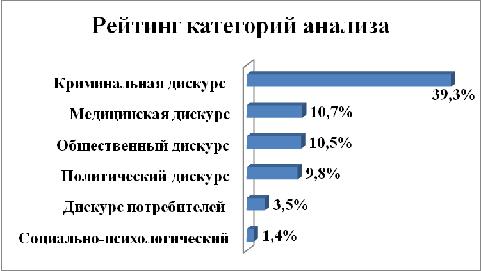 Рис. Расположение единиц анализа в зависимости от частоты встречаемости в прессе Республики Карелия в категории анализа «Дискурс потребителей наркотиков»
