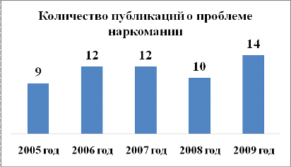 Рис. 3.3 Количество публикаций о проблеме наркомании в период 2005-2009