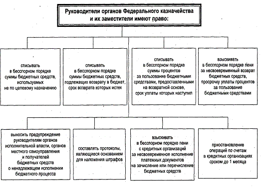 ) изъятие в бесспорном порядке следующих видов бюджетных средств: а) используемых не по целевому назначению; б) подлежащих возврату в бюджет, срок возврата которых истек; а также процентов (платы) за пользование бюджетными средствами, предоставленными на возвратной основе, срок уплаты которых наступил (ст. 289 - 291, 296 - 299, 302 - 303 БК РФ);