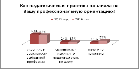 укрепила в выбранной профессии (69%), на практике по профилю - 63%; первой