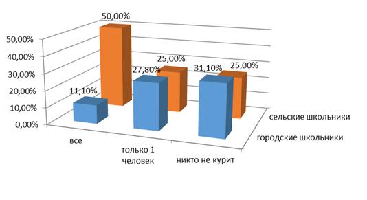 Иная ситуация складывается в городских семьях, у 1/3 опрошенных в семье никто не курит.
