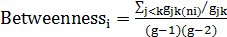 Ключевыми переменными являются показатели центральности по степени, центральности по близости, центральности по посредничеству и центральности по собственному вектору. Смысловая нагрузка каждого из этих показателей рассматривались ранее. Далее будут рассмотрены математические методы их измерения.