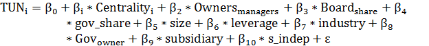 Также в работе будут рассматриваться совместное влияние показателей центральности и доли государственных собственников в компании. Доля государственного владения должна способствовать сокращению «туннелирования», так как государство заинтересованно в законных сделках. Вторая гипотеза следующая:: Чем выше доля государственного владения, тем меньше использование активов компании в личных целях.
