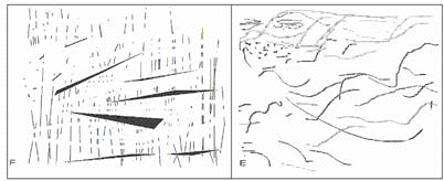 Ещё одна форма взаимодействия музыки и живописи появляется во второй половине ХХ в. - графические партитуры. Они смотрятся как рисунки, но такой внешний вид более очевиден для исполнения крупными составами оркестра, чем многочисленный ряд строчек. При этом более подходит для музыки, где высока роль импровизации. "Декабрь 1952" - одна из первых таких пьес для любого состава, также вдохновлённая творчеством художников - Александра Калдера, Джексона Поллака и Роберта Раушенберга. Её партитура: Со слов композитора, сию композицию можно исполнять с любой точки и при этом в любую сторону, исполнение происходит в трёх измерениях - горизонтальном, вертикальном и временном. При этом заранее необходимо определить только продолжительность пьесы, она ведь не предписана композитором. Следовательно, пьеса оставляет впечатление ирреальности.