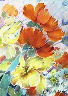 шторы. Использует в своей работе - холодный, горячий батик, свободную роспись и