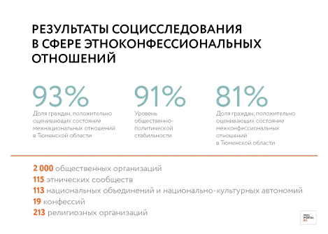 В Тюменской области наряду с удовлетворением этнокультурных запросов в приоритетном порядке осуществляется государственная поддержка мероприятий, пропагандирующих идеи общероссийской гражданской идентичности, единства российской нации.