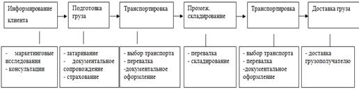 Приведенная схема подчеркивает, что процесс экспедирования грузов состоит из огромного числа порой сложных и трудоёмких операций, каждая из которых является транспортной услугой, предоставляемой экспедитором клиенту.