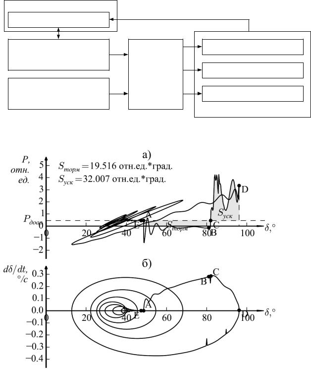 –постоянное сравнение площади торможения и предполагаемой максимальновозможной площади ускорения при наличии внешнего КЗ и постоянного сравнения площадей торможения и ускорения после отключения внешнего КЗ;