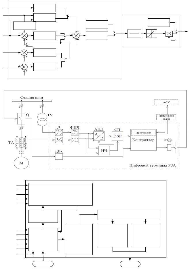 В состав подсистемы электропривода АРВ и защит входят модели системы возбуждения, устройства РЗА и алгоритм контроля устойчивости работы двигателя, структуры которых показаны на рисунках 4, 5 и 6 соответственно.