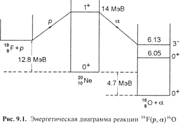 Рис.1 Энергетическая диаграмма реакции 19F(p,α)16O
