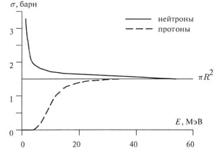 На рис. 9 показаны сечения образования составного ядра в реакциях p + 120Sn и n +120Sn в зависимости от энергии частиц. При небольших энергиях сечение реакции с протонами подавлено из-за кулоновского барьера. Нейтронное сечение, наоборот, с уменьшением энергии растет за счет увеличения длины волны налетающего нейтрона.