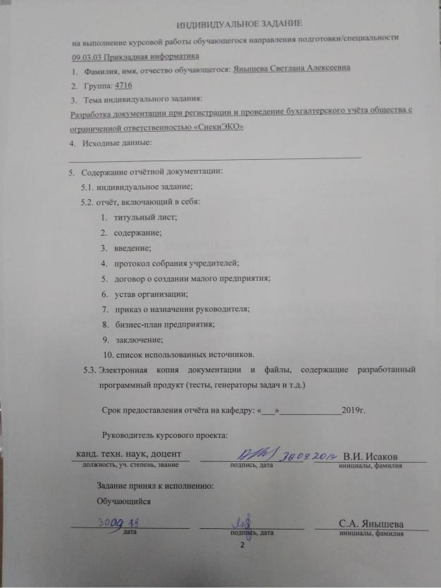 РАЗРАБОТКА ДОКУМЕНТАЦИИ И ПРОВЕДЕНИЕ БУХГАЛТЕРСКОГО УЧЁТА ОБЩЕСТВА С ОГРАНИЧЕННОЙ ОТВЕТСТВЕННОСТЬЮ «СнекиЭКО»