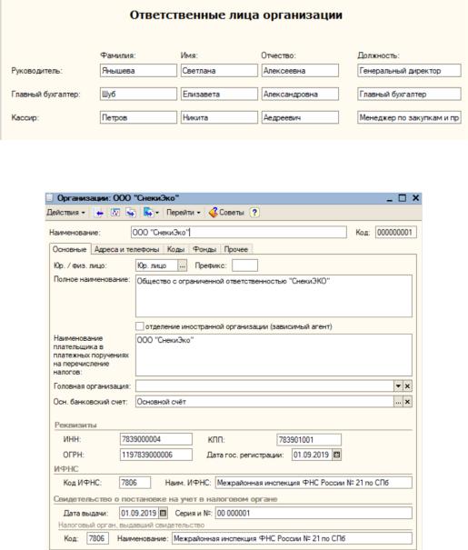 Рисунок 6 – Ввод об ответственных лицах организации