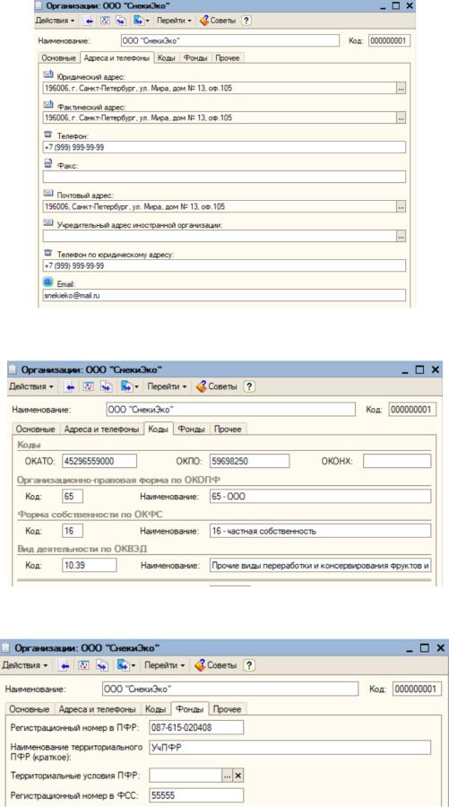 Рисунок 8 – Ввод адресов и телефонов организации
