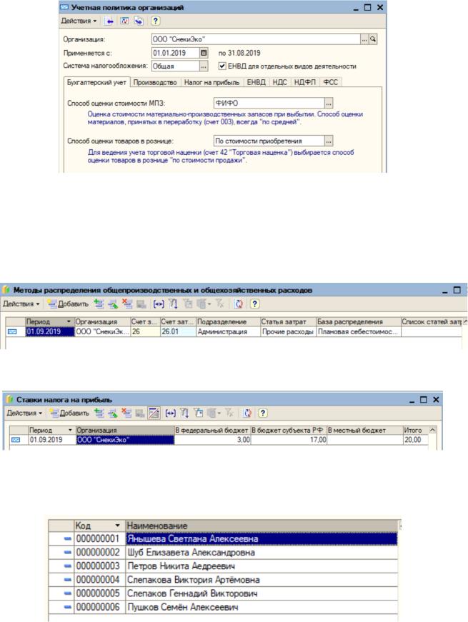 Рисунок 13 – Выставление ставки налога на прибыль Создан список физических лиц, показанный на рисунке 14.