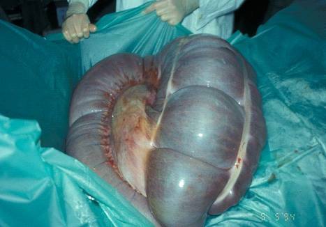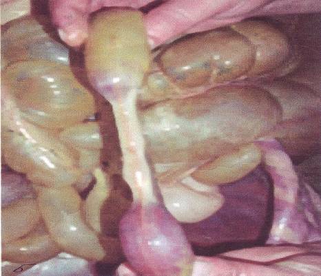 изменения живот сильно вздут. При разрезе брюшной стенки обнаруживаются