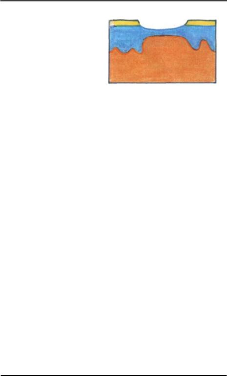Атрофия (atrophia) (рис. 1-11-24) - возникает в результате хронического воспаления и распространяется на эпителий и/или соединительнотканную основу слизистой. Атрофическая слизистая оболочка гиперемирована из-за просвечивания сосудов через тонкий эпителиальный слой. Диагностич ески наибольшее значение имеет атрофия эпителия спинки языка. Её можно наблюдать на исходе эрозивной формы красного плоского лишая, красной волчанки, кандидоза (эритематозной или атрофической форм), как результат осложнения после интенсивной химиотерапии (иммунодепрессанты, стероиды), терапии антибиотиками широкого спектра действия в сочетании с сульфаниламидными препаратами. Иногда за атрофию принимают мелкие атрофические рубцы.