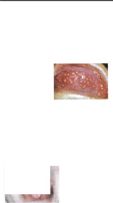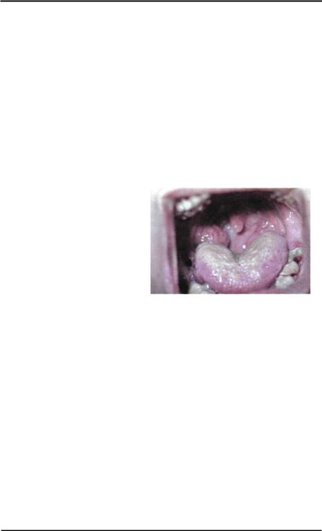оболочке. На мягком нёбе, язычке, дужках, языке и глотке наблюдается гиперемия с - стостью в виде ярких красных точек.(Рис.З-28). Эти точки представляют собой набухшие, воспа-