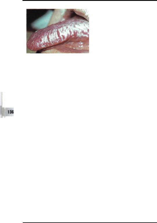 "Волосатая" лейкоплакия. "Волосатая" лейкоплакия полости рта описана только у лиц, инфицированных ВИЧ (Greenspan J.S. с соавт, 1985). По мнению Samaranayk и Pindborg (1989), она определяется не менее чем у 75% больных СПИДом и является одним из наиболее ранних и патогномоничных признаков инфекции. Непосредственной причиной такой лейкоплакии является, по-види- мому, вирус Эпштейн-Барра (Gross G. с соавт.,1988) или папилломавирус человека (Eversol L.R. с соавт, 1986); возможно их сочетание. У больных постоянно обнаруживаются в очагах лейкоплакии грибы рода Candida.