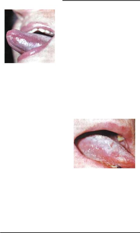 слегка западающие пятна. При всех формах лейкоплакии языка наблюдается значительное снижение вкуса, иногда вплоть до полного его прекращения.