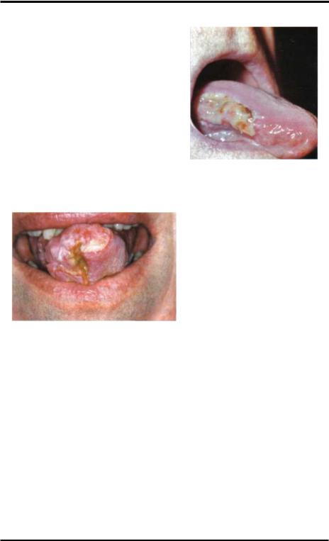 блюдают глубокие гангренозные изъязвления с неровными краями, покрытые некротическим налётом (рис.9-8). Язык увеличен, отмечаются признаки сильного болевого синдрома. Лимфаденопатия подчелюстных лимфатических узлов в различной степени выраженности. Нередкой находкой при этом васкулите будут различные нарушения