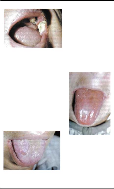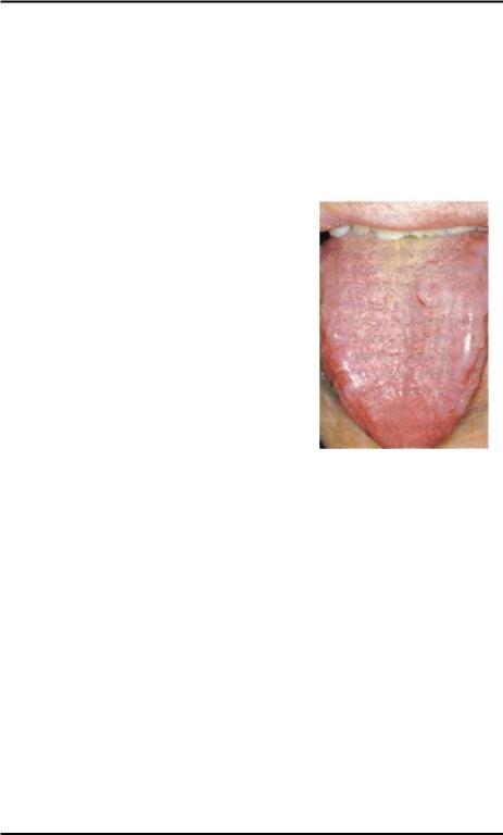 Признаком сердечно-сосудистой недостаточности (рис. 10-19) могут явиться изменения эпителия языка. На спинке языка отмечается десквамация нитевидных сосочков. Он становится гладким и блестящим ("полированный