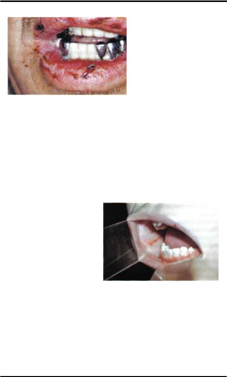 связи с перенесёнными инфекционными заболеваниями. Кожные высыпания принимают сливной характер, образуя возвышающиеся над уровнем кожи геморрагии, в центре которых возникают некротические изменения с последующим развитием язв. На слизистой оболочке полости рта, наряду с петехиальными и геморрагическими изменениями, могут наблюдаться очаги деструкции от поверхностных эрозий до ,язввыполненных некротическим налётом. Отмечается их крайне медленная эпителизация. Изменения в полости рта могут быть выраже-