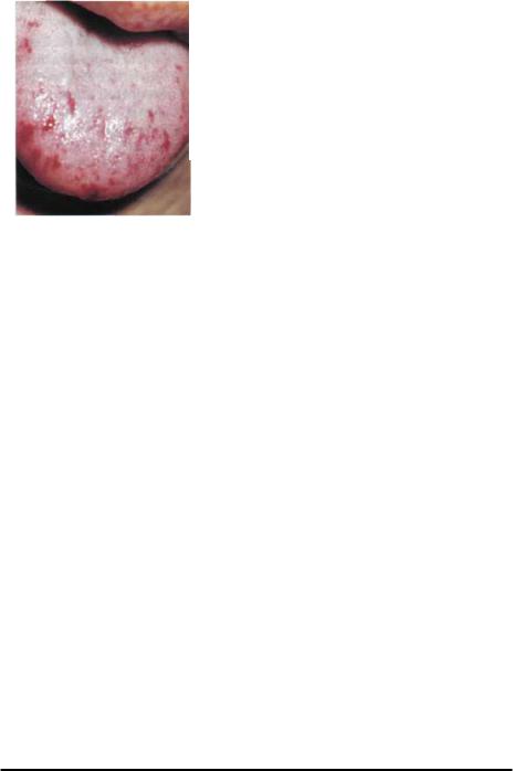 темы. Поражения появляются на передней половине языка, губах, нёбе, дёс |