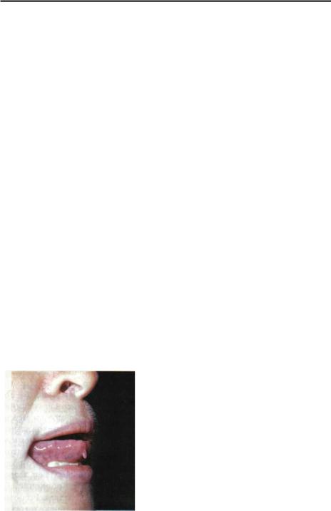 ки. Нередким симптомом является складчатый язык (Е. Н. Grattan, J. Hamburger, 1987). Возможны также липомы, лимфангиомы, гемангиомы языка и мягкого нёба, гипоплазия челюстей, микростомия.
