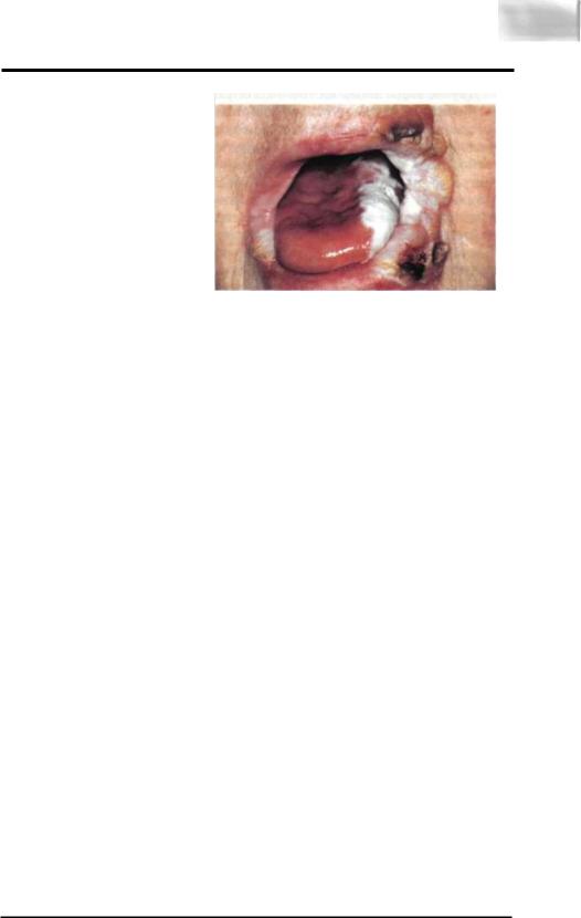 Alibert (1806). В настоящее время его считают не самостоятельной нозологической формой, а симптомом либо болезни Ходжкина, либо ретикулярно-кле- точной саркомы, либолимфосаркомы. Существуют три формы грибовидного микоза, нередко последовательно переходящие одна в другую: эритематозная, бляшечная, опухолевидная. В полости рта встречаются обычно бляшечная и опухолевидная формы. Наблюдают многочисленные инфильтраты с последующим изъязвлением и образованием глубоких некротических язв(вплоть до кости или мышечного слоя), расположенных на инфильтрированном основании (Б.М.Пашков, 1963). Изменения в полости рта обычно сочетаются с изменениями кожных покровов; в целом клиническая картина напоминает некроз при сердечно-сосудистой недостаточности. Заболевание нередко протекает вместе с лимфоили миелолейкозом.