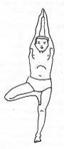 Техника выполнения: И. п.: тадасана. Согните правую ногу в колене и поместите правую пятку в основание левого бедра. Прижмите всю правую стопу к левому бедру, направив пальцы вниз. Балансируя на левой ноге, соедините ладони и вытяните руки над головой. Дышите глубоко. Опустите руки вниз и разъедините ладони. Выпрямите правую ногу в колене и вернитесь в тадасану. Выполните позу в другую сторону.
