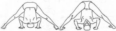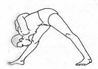 Техника выполнения: И. п.: тадасана. С вдохом поместите руки на талию и расставьте ноги на ширину 135-150 см. Подтяните коленные чашечки вверх, приведя тем самым в действие мышцы ног. С выдохом наклонитесь и опустите ладони на пол между стопами, выровняв руки на одной линии с плечами. Сделайте вдох и, прогнув спину, поднимите голову вверх. На выдохе согните руки в локтях и опустите макушку на пол, оставляя вес тела на ногах. Стопы, ладони и голова должны находиться на одной прямой линии. Оставайтесь в позе в течение 30 секунд. С вдохом вернитесь в тадасану.