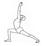 Техника выполнения: И. п.: тадасана. Расставьте ноги на 120-135 см. Поднимите руки на уровень плеч, ладони поверните вниз. Медленно выдыхая, правую стопу поворачивайте на 90 градусов вправо, левую стопу слегка поверните вправо. Левую ногу держите вытянутой, подтяните колено. Правую ногу сгибайте в колене, пока бедро не будет параллельно полу, а между бедром и икроножной мышцей должен образоваться прямой угол.