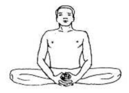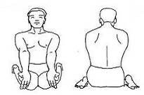 Техника выполнения: И. п.: стойка на коленях. Колени соедините вместе а стопы раздвиньте на полметра. Опускайте на пол ягодицы, но следите чтобы тело не опускалось на стопы. Стопы расположены по бокам бедер. Внутренние стороны икроножных мышц касаются внешних сторон бедер. Пальцы ног направленны назад. Запястья расположите на коленях, ладони направьте вверх. Соедините кончики большого и указательного пальцев, а остальные пальцы выпрямите. Спина прямая. Находитесь в позе как можно дольше. Дышите глубоко. Потом на некоторое время ладони поместите на колени. Пальцы рук переплетите и вытяните руки на головой. Ладони направлены вверх. В этой позиции оставайтесь в течении минуты, дышите глубоко. Сделайте выдох, расплетите пальцы и ладони положите на подошвы ног. Выполните наклон вперед и подбородок положите на колени. В этой позиции задержитесь на минуту, дышите нормально. Сделайте вдох, туловище поднимите, стопы перенесите вперед и расслабьтесь.