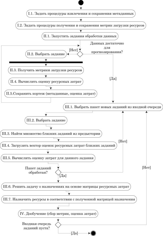 Для применения описанного метода планирования задач в РСОД на прак тике, была сформулирована методика планирования задач на основе ме таданных и ресурсных метрик (Рисунок 1).