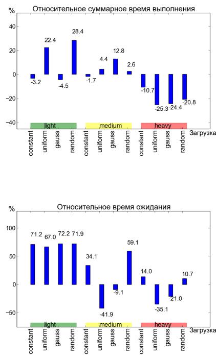 Рисунок 3. Изменение среднего времени ожидания в очереди для метода Meta_Sched по сравнению с методом FIFO_LLF