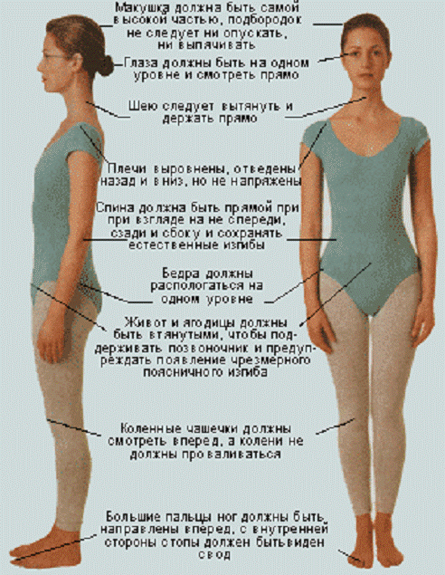 Физиологическими изгибами называются изгибы позвоночника в сагиттальной плоскости. Голова держится прямо, плечи развернуты, слегка отведены назад, грудь выпуклая, лопатки плотно прижаты к грудной клетке, живот подобран, ноги выпрямлены.