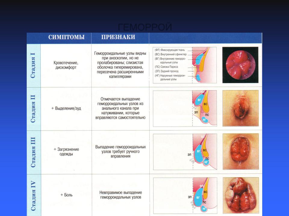 •болезненные ощущения, связанные с дефекацией (зуд, жжение, дискомфорт, боли). Обычно внутренние узлы безболезненны, боли появляются только в случае их тромбоза и/или выпадения с ущемлением;