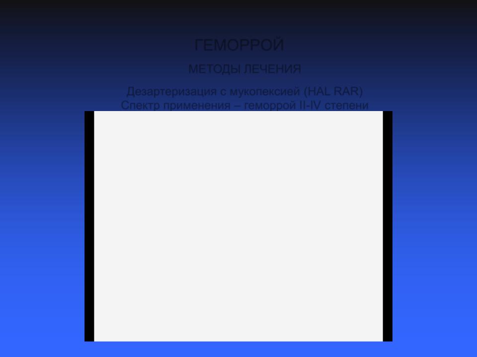 Дезартеризация с мукопексией (HAL RAR) Спектр применения – геморрой II-IV степени