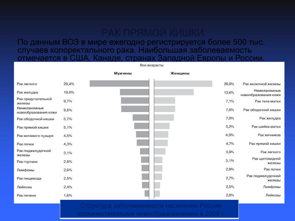 По данным ВОЗ в мире ежегодно регистрируется более 500 тыс. случаев колоректального рака. Наибольшая заболеваемость отмечается в США, Канаде, странах Западной Европы и России.