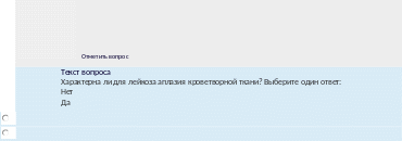 Текствопроса Характерно ли для истинной полицитемии (болезнь Вакеза) увеличение впериферической кровибазофилов? |