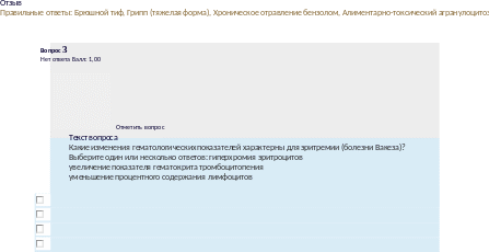 Отзыв Правильныеответы:увеличениепоказателягематокрита,уменьшениепроцентногосодержаниялимфоцитов |