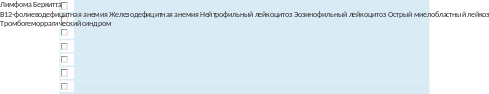 Правильныеответы:Острыймиелобластныйлейкоз,В12-фолиеводефицитнаяанемия,ЛимфомаБеркитта