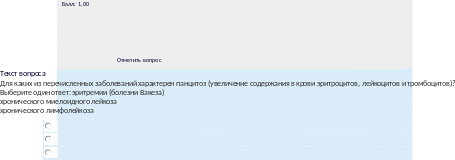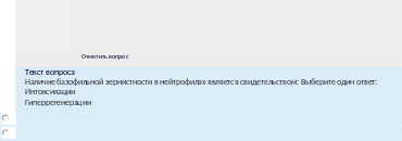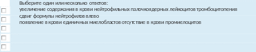 Текствопроса Какиесостояниечастосопутствуетхроническомулейкозу?Выберитеодинилинесколькоответов: |