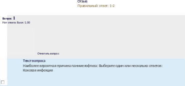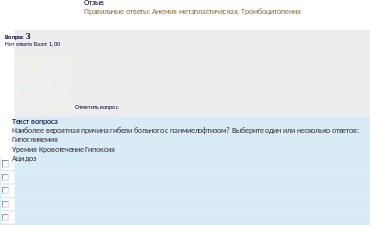 Отзыв Правильныеответы:Агранулоцитоз,Панмиелофтиз,Острыймиелобластныйлейкоз |