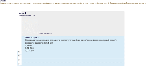 Отзыв Правильныеответы:увеличениесодержаниявкровинейтрофильныхпалочкоядерныхлейкоцитов, сдвигформулынейтрофилов влево |