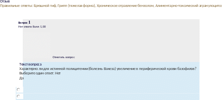 Отзыв Правильныеответы:Аскаридоз,Хроническиймиелоцитарныйлейкоз,Трихинеллез |