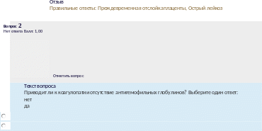 Отзыв Правильныйответ:Лейкемическое'зияние' |