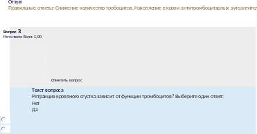 Текствопроса Укажитефакторы,действиекоторыхвызываетразвитиетромбоцитопений:Выберитеодинили несколько ответов: |